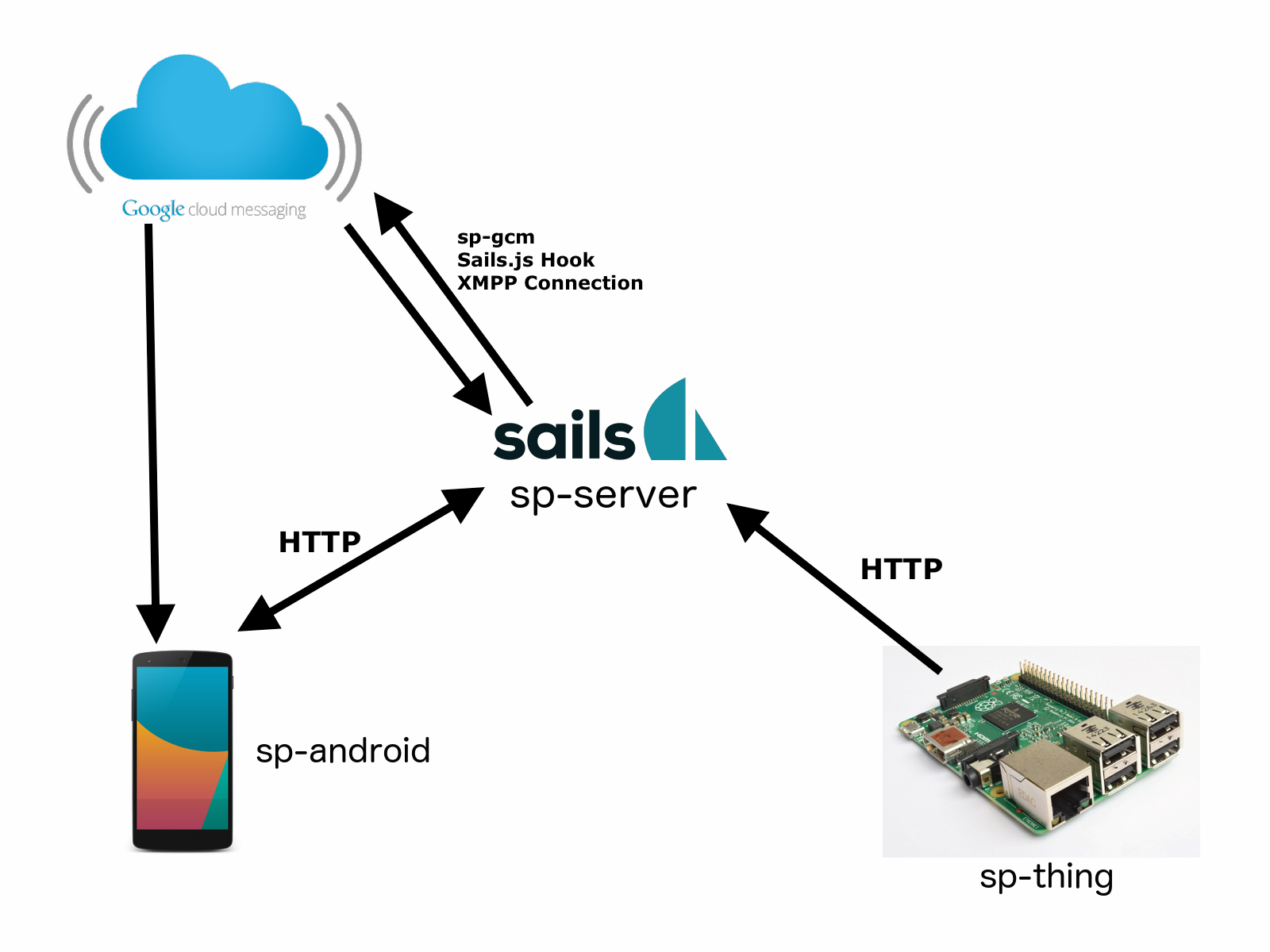 For the SneakSpeak application we forked and modified an existing GCM XMPP library and also wrote a custom Sails.js hook for our project.